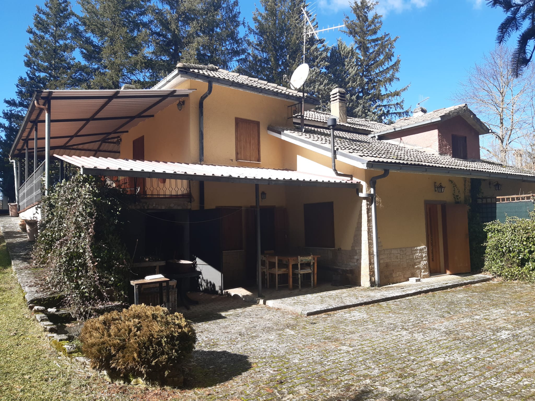 A 5 km dal capoluogo in contesto riservato di ville e villini vendiamo porzione di bifamiliare distribuita su due livelli e composta di sala, cucina, camera e garage al piano terra e da due camere e bagno al piano primo; completano la proprietà un ampio portico e grande giardino e frutteto.